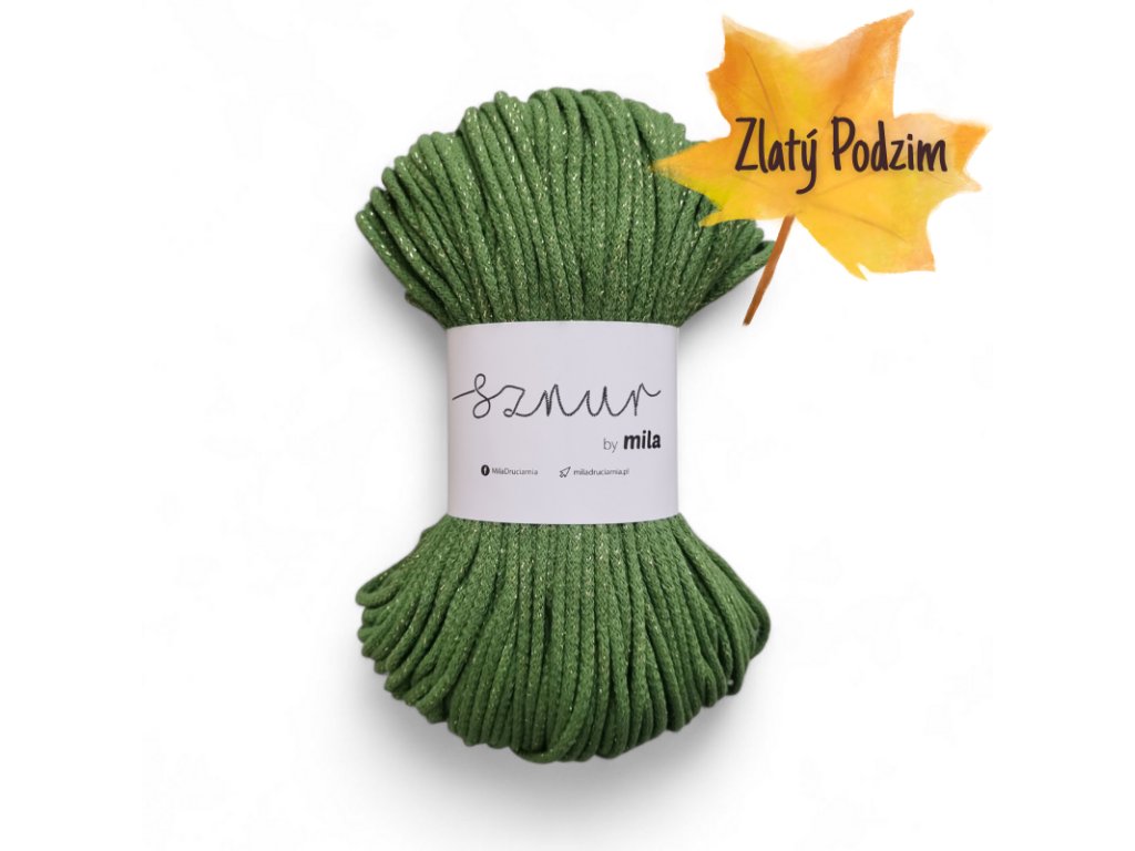 Bavlněná šňůra Glitter 3mm - AVOKÁDOVÁ zlatá/PG131