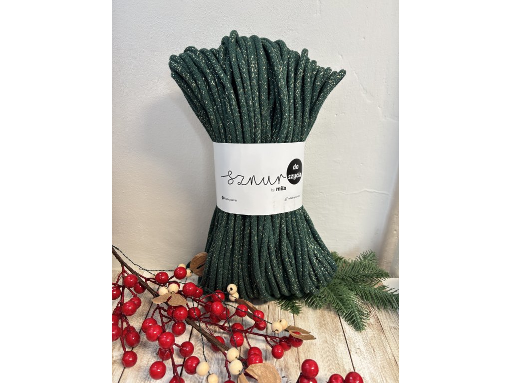 Bavlněná šňůra na šití 6mm/50m - ZELENÁ LAHVOVÁ ZLATÁ/PG47
