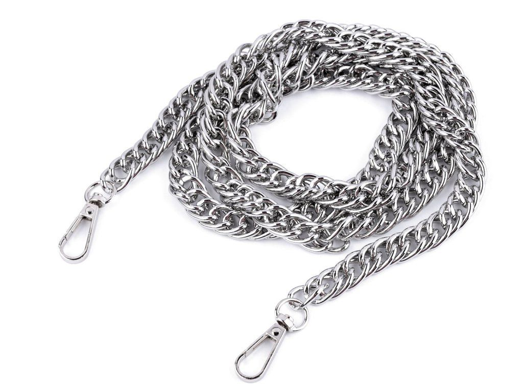 Kovový řetízek je vhodný na menší kabelky, psaníčka a pouzdra na mobilní telefony. Na obou jeho koncích najdete připevněné karabinky.