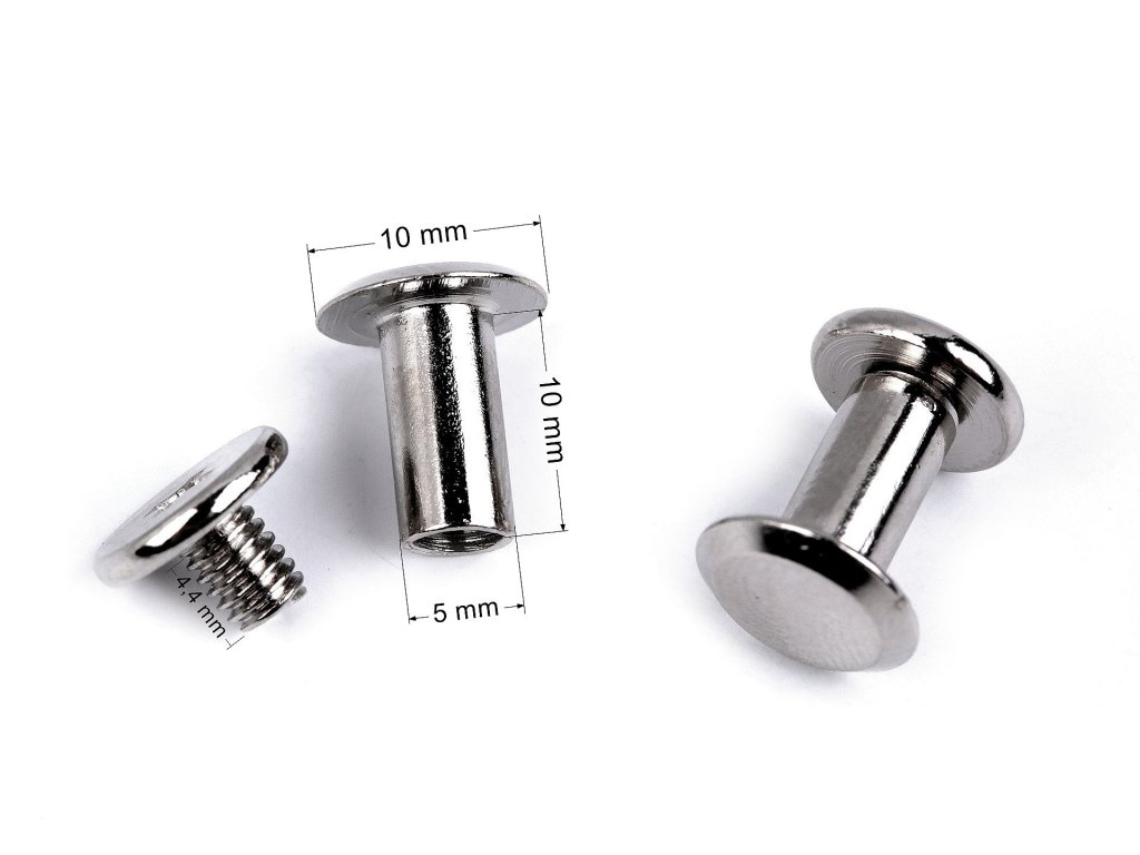 Kovový nýt se skládá ze dvou částí, které do sebe jednoduše zašroubujete. Nýty jsou vhodné na výrobu tašek, kabelek, opasků nebo výrobků z plsti a kůže.