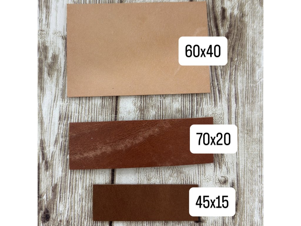 • Materiál: Italská hovězí kůže, tloušťka 1,0–1,7 mm (ideální pro našívání na háčkované úplety).