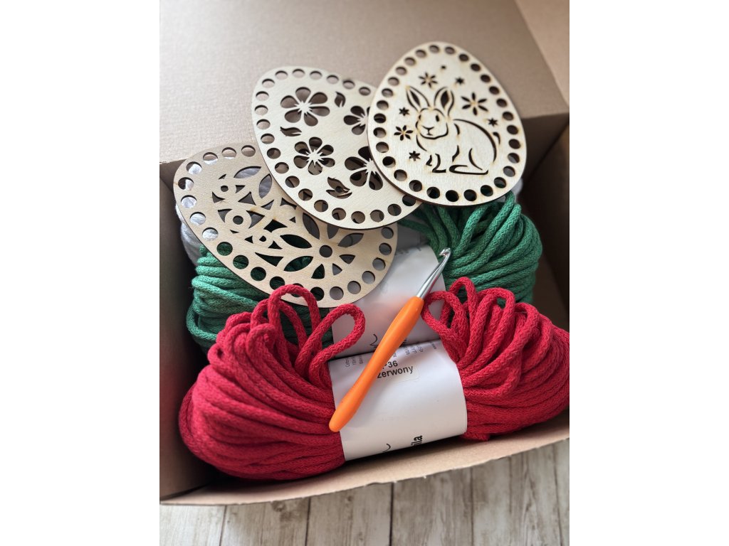 Kreativní sada PRO VÝROBU HÁČKOVANÉ VELIKONOČNÍ DEKORACE.